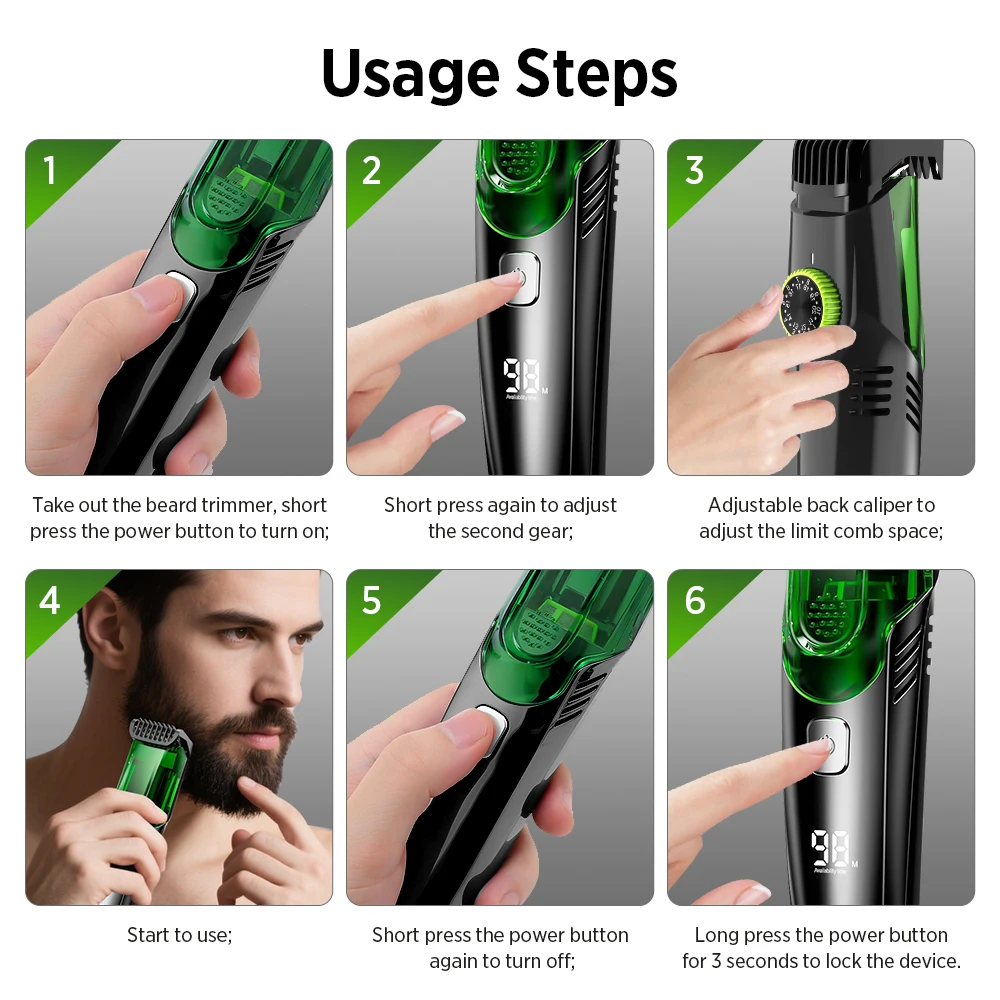 Enjoy a mess free grooming experience with built in suction that collects trimmed hair instantly. Keep your sink and floor spotless while achieving precise results on beards, mustaches, and sideburns.